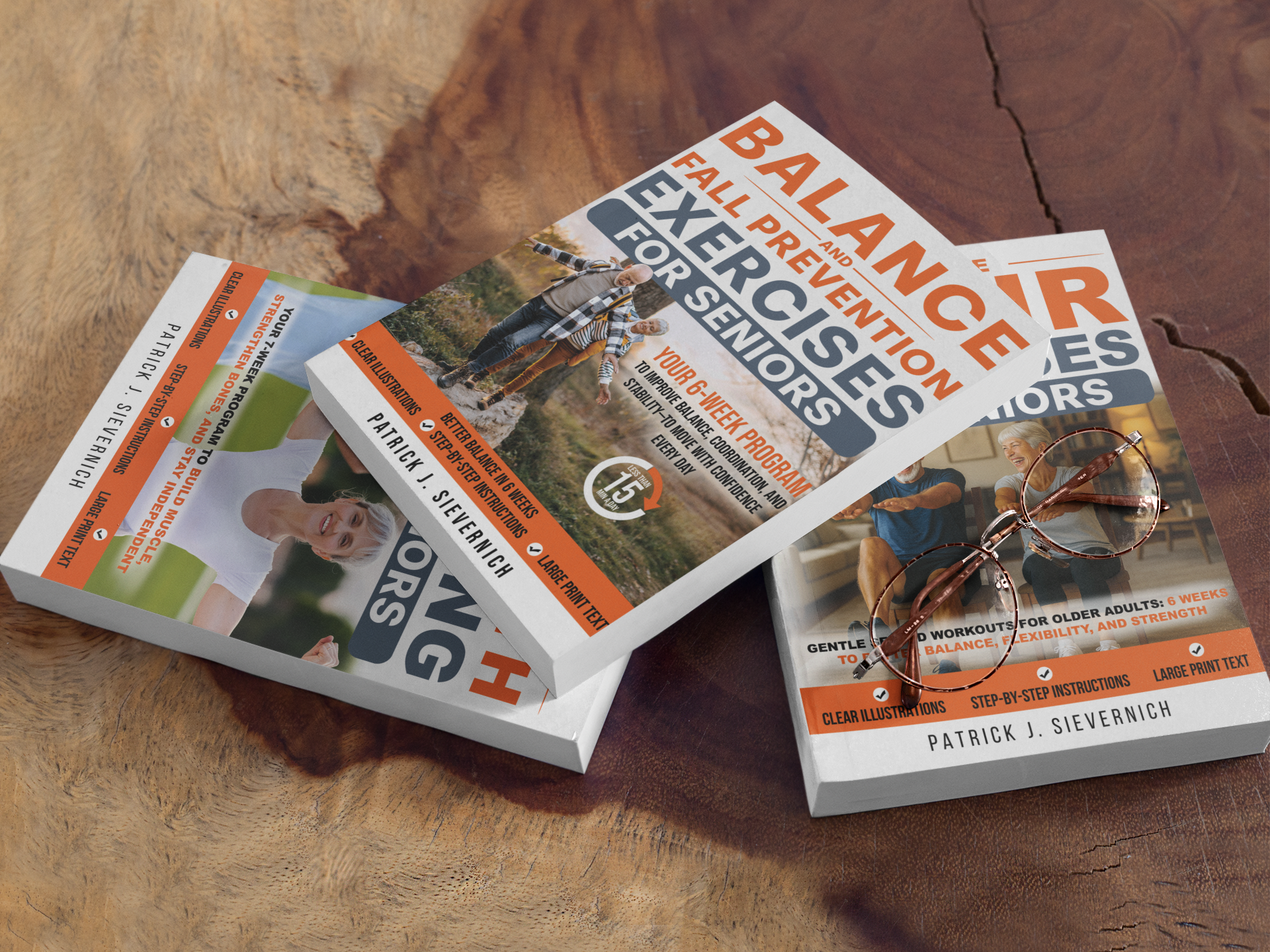 My books are part of a growing senior fitness series covering balance, strength, mobility, core training, chair exercises, and stretching. All designed to work together or stand on their own.